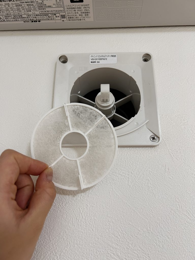 24時間換気システムで外気を導入する部分が給気口ですが、汚れた外気が直接入ってこないようにする為にフィルターが取り付けられています。